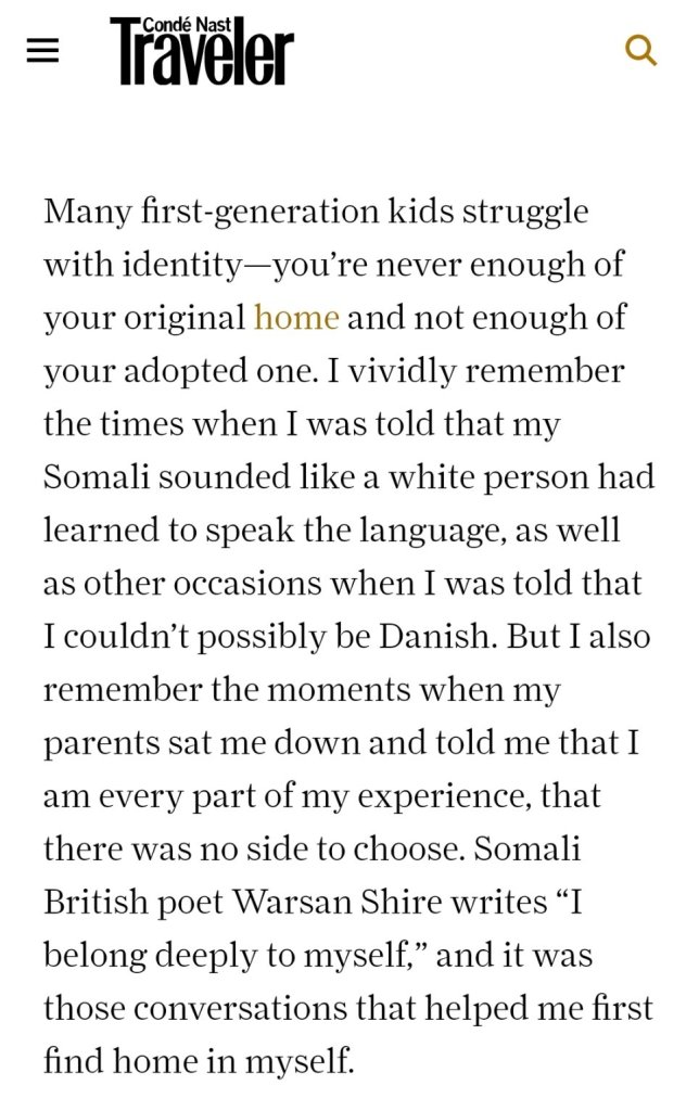 Somalia is a wondrous place that made a nomad like me feel rooted for the first time in my life. Living in between and across cultures is the reality of the majority of people on Earth and belonging is truly so transformative. Yet, the heartbreaking thing is that no matter how obvious it is that the human need and want are pretty universal, so many of us still can’t accept that our individual stories and contexts fit into a larger story of humanity and it is important for us to come together in understanding and compassion. It’s so important to not let other people hijack our narratives, and for us to put out the stories that reflect our reality. That’s what I try to do with anything and everything I put out in this world, in whatever medium or capacity.